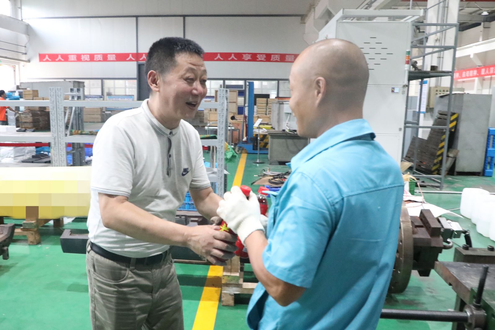 在102車間和前衛(wèi)表業(yè)金屬制品和塑壓成型車間,廖軍每到一處,為堅(jiān)守崗位的職工送去清涼飲品,并詳細(xì)詢問(wèn)和了解職工的生產(chǎn)、生活情況,叮囑大家要時(shí)刻牢記把安全生產(chǎn)放在第一位,做好防暑降溫工作。慰問(wèn)結(jié)束后,廖軍還觀看了公司產(chǎn)品展示廳。