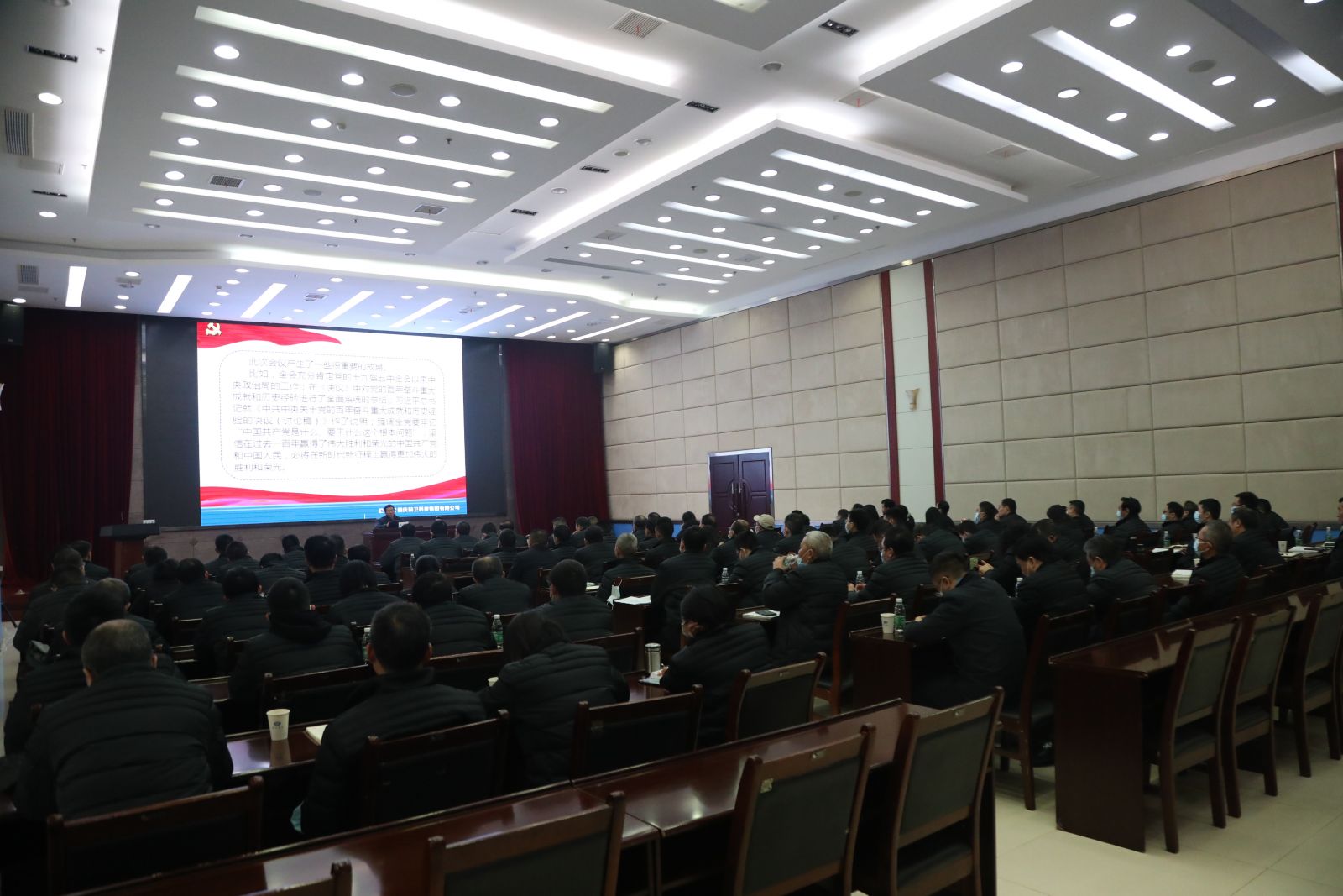 12月12日上午,黨委利用周末休息時間舉辦“前衛(wèi)管理論壇”。黨委書記、董事長徐猛為公司中層以上干部、科技委成員、高級專務(wù)及專務(wù)、集團公司高級專家共計120余人宣講黨的十九屆六中全會精神,并結(jié)合實際工作講授干部領(lǐng)導(dǎo)力和戰(zhàn)略決策思維等方面管理知識。黨委副書記、總經(jīng)理張柔主持宣講會。